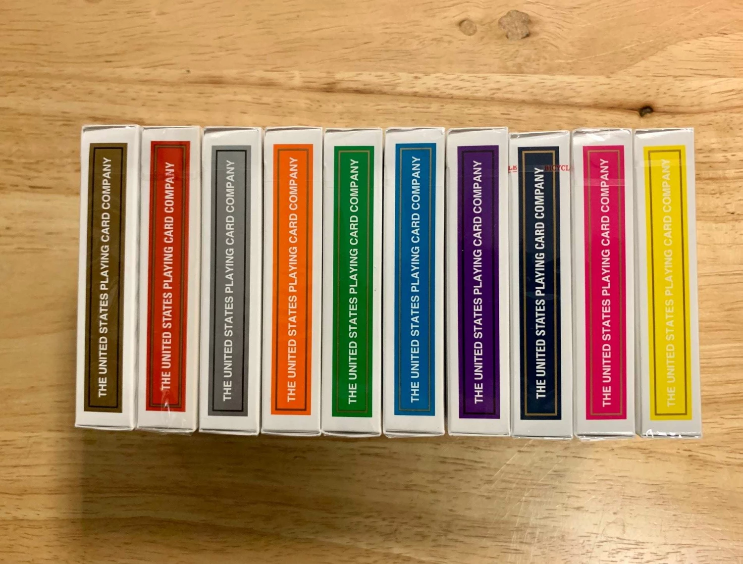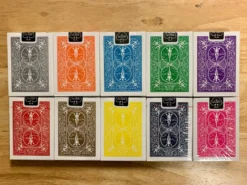 10 Bicycle rider back playing cards in assorted colors.