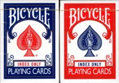 A very minimal Bicycle rider back deck with only indices on the faces. No pips, no court characters. This is essentially the exact opposite of our “Faro Edition” Bicycle deck we created a few years ago.