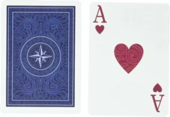 Odyssey from Bicycle Playing Cards is a premium playing card deck meant to transport card collectors, card enthusiasts, and card players alike to a different time and land. The design for the deck began with the court faces, which were inspired by the Trophy Whist No. 39 deck, first printed by The United States Playing Card Company in 1895. The faces were re-colored in beautiful, monochromatic blue tones, while the suits still retain their traditional black and red colors. The blue tones of the court cards inspired the theme of the deck, which is taking card enthusiasts on an adventurous quest on the high-seas as well as on land. The tuck design continues the theme of monochromatic blues and features intricate wave-like elements as well as a central compass. The tuck case is printed on matte finish paper with gorgeous light blue metallic foil details for an ultra-premium look. All Bicycle playing cards are made in the USA with Bicycle’s classic Air Cushion finish. This gives the playing cards a linen-like feel and allows cards to glide smoothly off one another during shuffling, dealing, and flourishing. These Bicycle Playing Cards are not only a beautiful statement piece on your coffee table, but are also perfect for playing your favorite card games – from Rummy to Spoons, Spades to Euchre, Hearts to Blackjack, and hundreds of others.