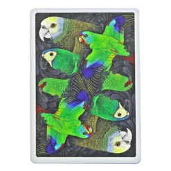 Introducing the remake of the original parrot deck!  This deck is even more intense than the first deck – while the original featured 52 unique parrot species, this one showcases well over 200.  The deck is also in glorious full color, both front and back. Each card is richly  illustrated with 1 or more parrots.  In another improvement, the deck will also be printed by the United States Playing Card Company.