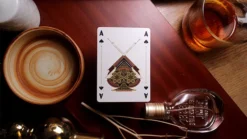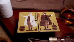 The Desert Dust version captures the natural colors of the west. A deep brown tuck includes illustrations on the center of every good western town – the saloon. Luxurious gold foil ensures that the artwork will stand out on the shelf. But the most unique feature of all is the strategic laser cutouts on both the front and back of the tuck. On the front, classic swinging doors invite you into the saloon. On the back, a circular cutout reveals the central design feature of the back design of the cards, the iconic revolver chamber.