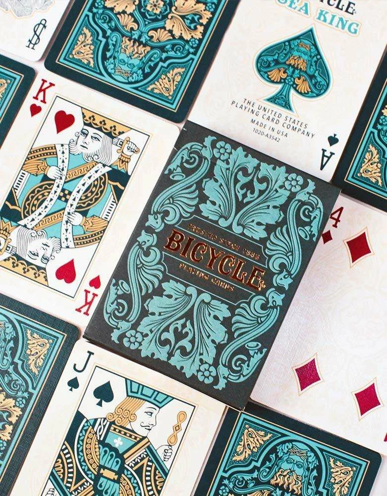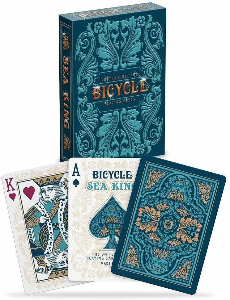 With Bicycle® Sea King playing cards, deal a hand with friends to experience the richly detailed blues and teals of the card back and faces! Combined with a foiled and embossed tuck, this deck is truly fit for a king!