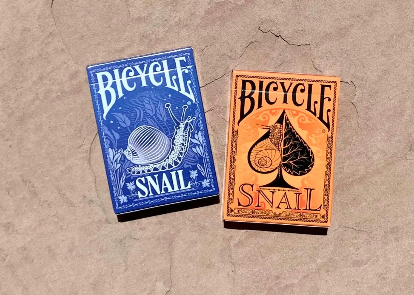 A snail themed limited edition Bicycle poker size deck suitable for all your playing card needs. Makes a great gift for the snail lover in your life or for anyone who appreciates great design. Previous decks in the critter series sold out quickly so don’t miss out!