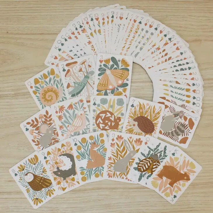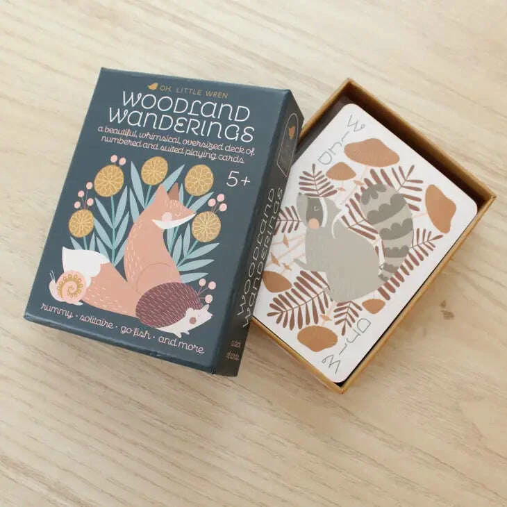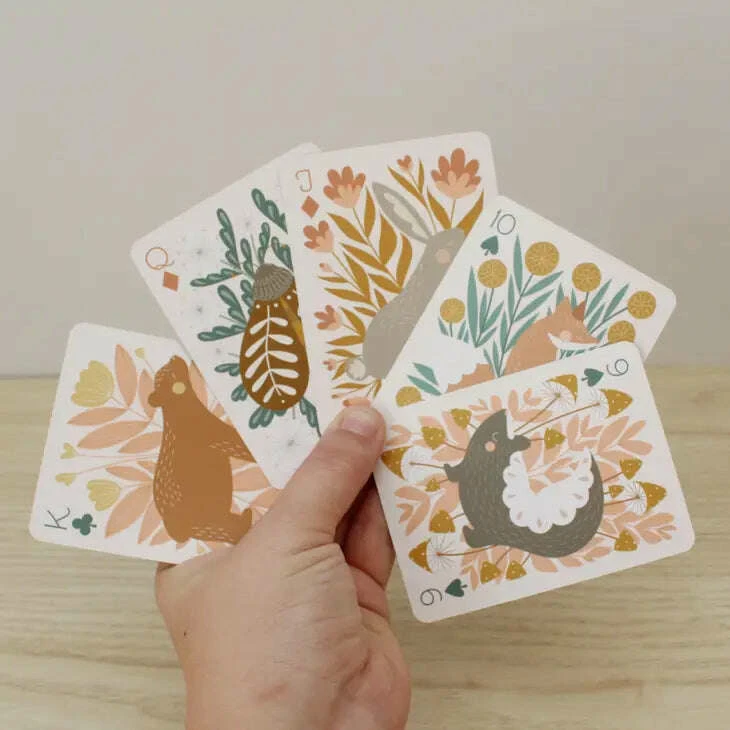Our beautifully illustrated, forest inspired set of playing cards is the perfect introduction to the world of card games. With the standard 52 numbered and suited cards plus 2 wild cards, you can play all of the classic games.